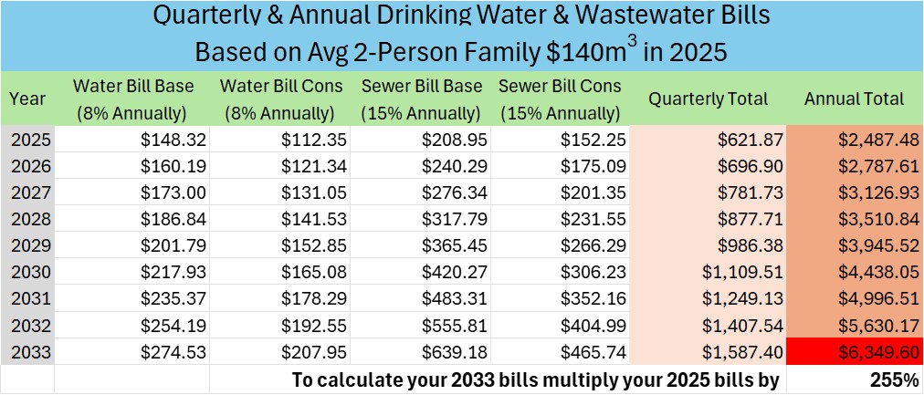 But don't worry—thanks to the recently adopted 2025-2033 rate plan with compounded annual increases of 8% for water and 15% for wastewater, Ramara is on track to claim the #1 spot by 2028. This is not desirable!